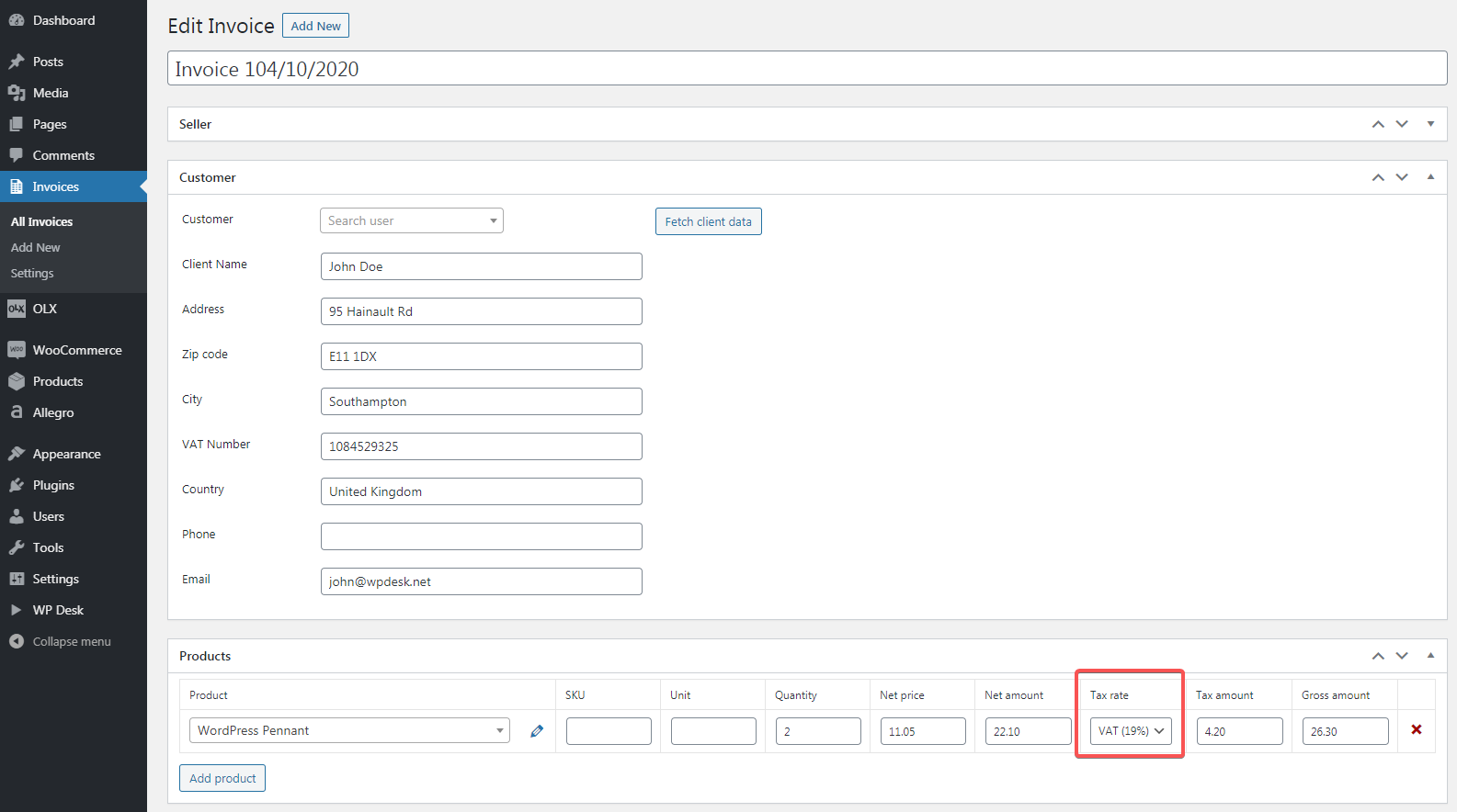 If the tax rate on the invoice is not valid, please review your WooCommerce tax rates. Also, please edit this particular invoice and check the chosen tax rate: