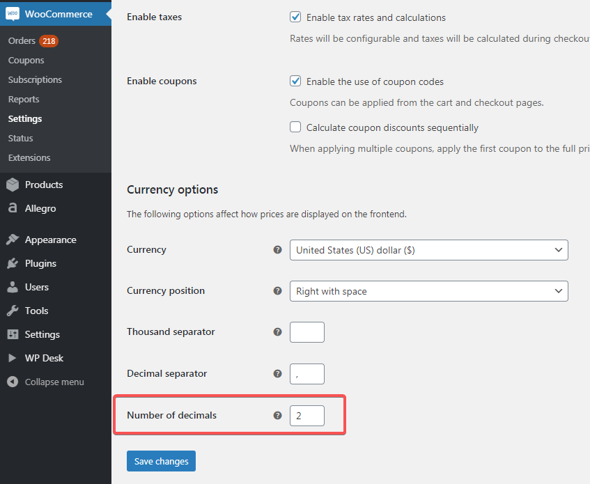 Make sure that you have the Number of decimals option is set to 2 in your WooCommerce settings: